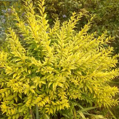 Листья Бирючина Ауреа – это его главная декоративная черта. Они обладают глубоким золотисто-зеленым цветом, который привлекает взгляд с первых дней вегетации. Осенью листья превращаются в яркие желтые и оранжевые оттенки, создавая гармонию с изменяющимися сезонами. Гладкая и глянцевая поверхность листьев придает кустарнику особую привлекательность, а удлиненная форма дополняет их изысканный внешний вид.