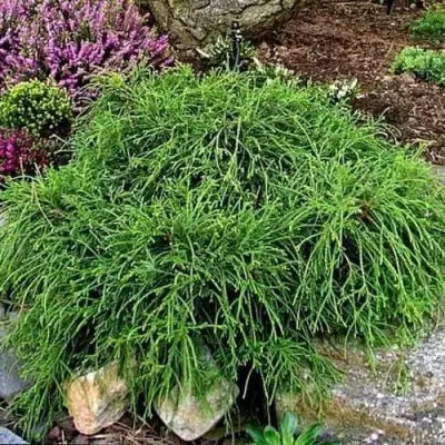 Кора растения имеет красновато-коричневый оттенок, придающий Кипарисовику превосходный декоративный вид. Побеги густые, приподнятые, с нитевидными кончиками, которые создают эффект каскада. Это делает его отличным вариантом для создания акцентирующих зеленых островков в вашем саду, а также для украшения беседок и террас.