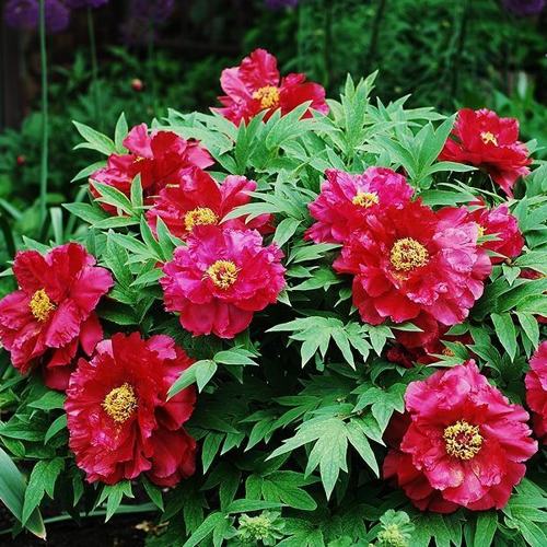 Этот пион формирует аккуратный раскидистый куст высотой около 1,2–1,5 м. Он красиво выглядит не только в период цветения, но и в течение всего сезона. Весной листья имеют лёгкий красноватый тон, летом — насыщенно-зелёный, а осенью переливаются бронзой. Даже после сброса листвы куст не теряет привлекательности благодаря древеснеющим побегам.