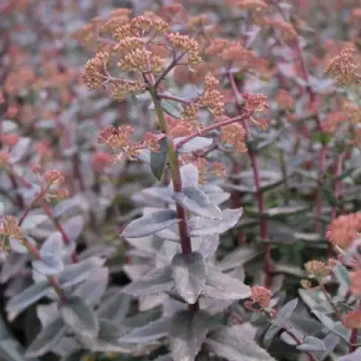 Цветение начинается в августе и продолжается до конца сентября. На концах побегов формируются крупные, плотные зонтичные соцветия до 10 см в диаметре. Цветки — розово-пурпурные, многочисленные, собраны густо, создавая плотные цветовые массы. Аромат лёгкий, едва уловимый, но растение активно привлекает пчёл и бабочек, что делает его ценным элементом опылительного сада.