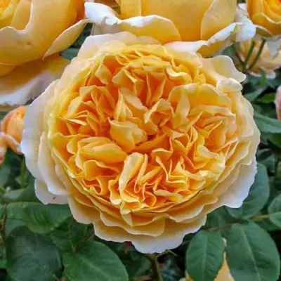 Цветки этой розы обладают уникальной двухцветной окраской: в тепле они часто светло-желтые и абрикосовые, в прохладную погоду переходят в более насыщенные тона, с центральной частью почти абрикосового цвета и светло-желтыми внешними лепестками. Каждый цветок достигает диаметр около 10 см и состоит из 83 густомахровых лепестков, которые создают великолепный чашевидный силуэт. Цветы располагаются как по одному, так и в небольших соцветиях, что придает кусту особую выразительность.
