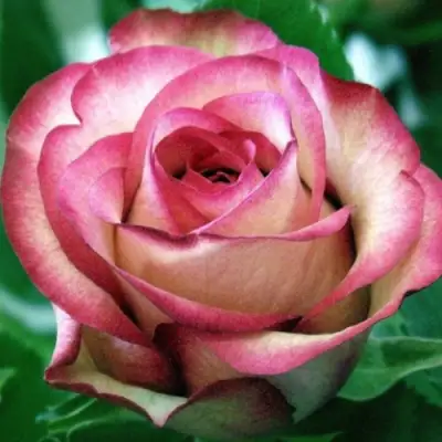 Роза Карусель относится к группе чайно-гибридных роз и предназначена преимущественно для срезки. Её цветки характеризуются удивительной окраской, плавно переходящей от белого в центре до фиолетово-розового по краям. Основной тон цветка – красно-белый, с легкой розовой каймой по краю лепестков. Такая игра цвета создает неповторимый визуальный эффект, который трудно оставить незамеченным.