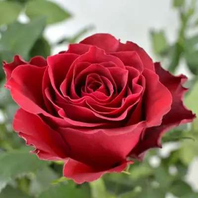Окраска цветка розы Родос пленяет свою насыщенно-красным оттенком с терракотовыми нотками. Основная окраска цветка — ярко-красная, что придает ему царственный вид. Цветок имеет бокаловидную форму бутона и классическую форму в полном роспуске. Диаметр крупного цветка достигает 8-10 см, что делает его заметным и выразительным элементом любой композиции. Каждый цветок густомахровый, состоит из примерно 45 лепестков и размещается одиночно на стебле, что подчеркивает элегантность и утонченность этого сорта. Аромат розы Родос отличается легкими фруктовыми нотками и имеет слабую интенсивность, что делает его ненавязчивым и приятным.