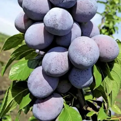 Саженцы сливы Гильберт демонстрируют среднюю урожайность – около 70 кг с одного дерева. Данный сорт известен своими прекрасно развивающимися плодами, вес которых колеблется от 37 до 45 граммов. Плоды имеют широкоовальную форму и ко времени созревания обрастают роскошной бордово-фиолетовой окраской. Особенно примечательна кожура, которая не только бордово-фиолетовая, но и покрыта легким голубоватым налетом, придающим фруктам дополнительную привлекательность.