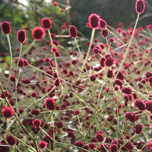 Цветение начинается в июле и продолжается до сентября. Цветки мелкие, собраны в вытянутые головки длиной около 6 см. Окрас — насыщенно шоколадный, ближе к бордово-чёрному. Цветоносы тонкие, но крепкие — идеально подходят для лёгкой, подвижной архитектуры в саду. Соцветия лишены аромата, что делает сорт удобным для размещения возле террас, дорожек и зон отдыха. Особенно эффектно выглядит в вечернем свете — глубокий оттенок приобретает насыщенную бархатистость.